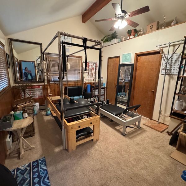 Reformer/cadillac combo, along with a wunder chair and mat. Mix up your workout with different equipment combinations or take it down to the mat and build your strength in ways your body will thank you for.